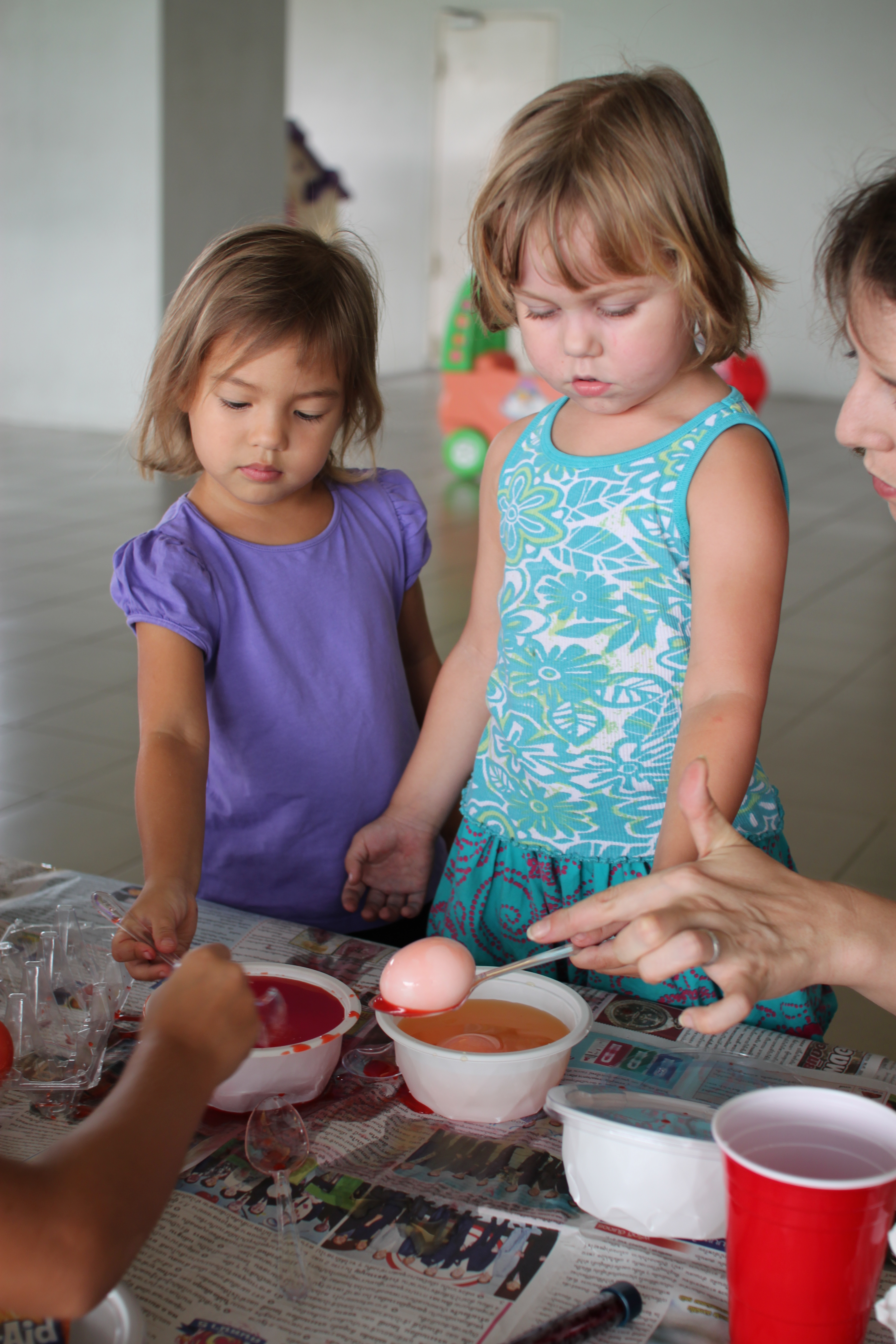 - Sophia dyes an egg while Logan looks on . . . is this shade dark enough yet?
