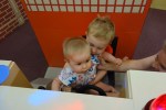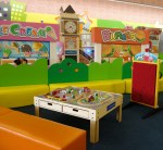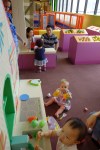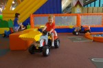 The real prize, however, is deeper in the amusement area when you come to a place called Kidzoona. Kidzoona is home to a playground amidst a sea of balls, a bouncy track, giant tumbler balls, a giant inflatable slide, a construction zone with ride-on diggers and cranes, and a faux town with a bakery, fire station (and fire truck, of course), sushi bar, ice cream parlor, grocery store, kitchen, and a burger joint, and separate areas with a train table, peg board, blocks, magnetic toys, and more. This place is really cool and considering the foot traffic I can imagine it gets, still very clean. Here is a glimpse inside Kidzoona: