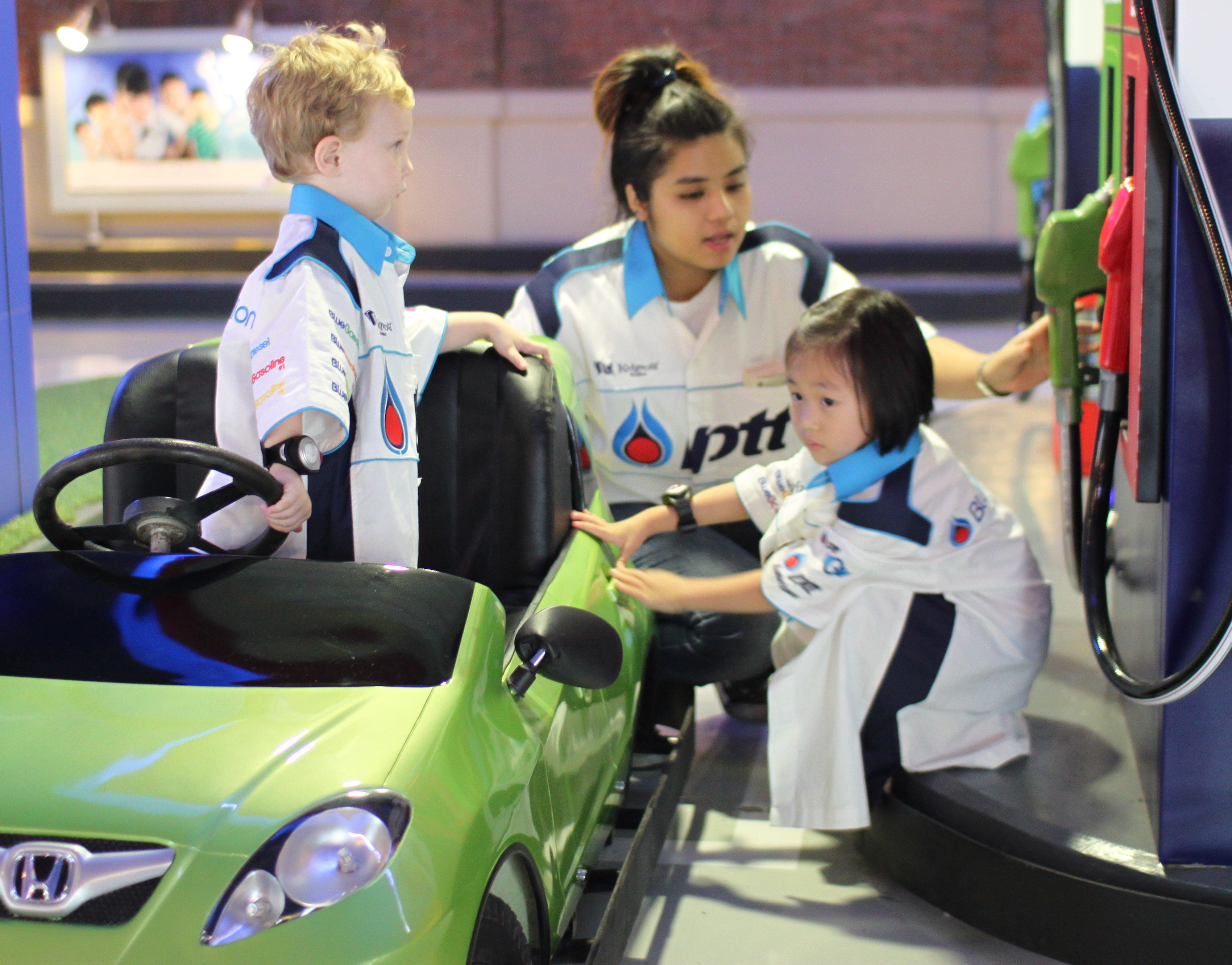 I love the concept of Kidzania – that kids can be anything if they put their mind to it. I love the variety and choice it gives them with no preconceived notions about whether a dentist is cooler than a sushi chef; or a pilot better than an TV reporter. I love that it creates independence in children. Parents are not allowed in any of the demonstrations or activities – they watch from behind glass while their children get a (very short) tutorial about the trade craft they’ve chosen, followed by hands-on practice of the trade (activities are about 10-15 minutes a piece). When Logan flew the flight simulator, I couldn’t even go inside. I actually got to chill for 10 minutes. So nice. For both of us! Finally, I love that amid the hustle and bustle of Bangkok and the heat we are facing this time of year, Kidzania is a refuge for kids to get creative, role play, and be amazed by the things around them.