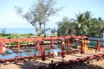 6:00am:  The high-pitched excitement in our one-year old’s voice wakes us all from sweet slumber in adjoining deluxe garden view rooms.  These are the most basic rooms at the resort, yet they are stunning and boast  beautiful views of the expansive, jungle-like yard area surrounding the resort and along the sea.  The rooms include a balcony, a small nook with Thai triangle pillows and full-length windows that overlook the garden (perhaps meant to be an in-room massage area, but most definitely a GREAT place to kick back and read a book), and a massive bathroom with a fantastic tub for washing three or four kids at once and a separate rainwater shower.  These “basic” rooms are the largest basic rooms I’ve ever stayed in.  Bar none.