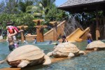 8:30:  We are swimming.  Swimming at one of resort’s three pools.  We spent most of our time in the spectacular kids’ pool, which, as I mentioned above, has giant turtles, a life-guard assisted water slide, bubbles, fountains . . . the whole nine yards.  Also, my one-year old could walk on her own in a wide swath of the pool.  My toddler could walk around the whole thing.  That, my friends, makes your life as parents much easier.  Sit and read your book while they play (well, okay, maybe just for a few minutes . . . but that few minutes is better than nothing).  Staff dole out free popsicles from 12pm-3pm at the kids’ pool everyday.  Does it get any better than that?  You can also order food and drinks (an extensive children’s menu is available) poolside.  Our kid-free friends hung with us for a few and then ventured on over to the pool with a swim-up bar located under a waterfall.  Yes, you heard that right.