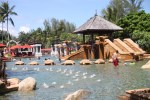 10:30:  It’s time for a break from the sun.  We get the kids dried off and dressed and we walk 20 feet behind us to the kids club.  Generally, kids are crying when their parents leave them at the kids club.  At this club, kids are crying when parents try to pull them out.  The club is spacious and bright, outfitted with padded areas and indoor playground equipment for the little ones, toy kitchens, an entire area devoted to painting, drawing, coloring and creating, an X-box Kinect with awesome games, computers, a separate movie-watching room with bean bag pillows and a sweet flat screen, and more that I’m sure I’m forgetting.  The real draw of the kids’ club, however, is the constant flow of insanely cool activities they offer children (ages four and up).  I happened to bring the list home with me, and here are a few examples:  learn to fly trapeze, sand castle making, super stilts walking, fishing, foot and hand massage introduction, thai language, thai costume studio, kids mocktail, thai dancing, nature color hunt, thai dessert making, yoga, cookie making . . . the list goes on and on.  This is a place where the kids could never get bored because there is something new and fun offered every hour.