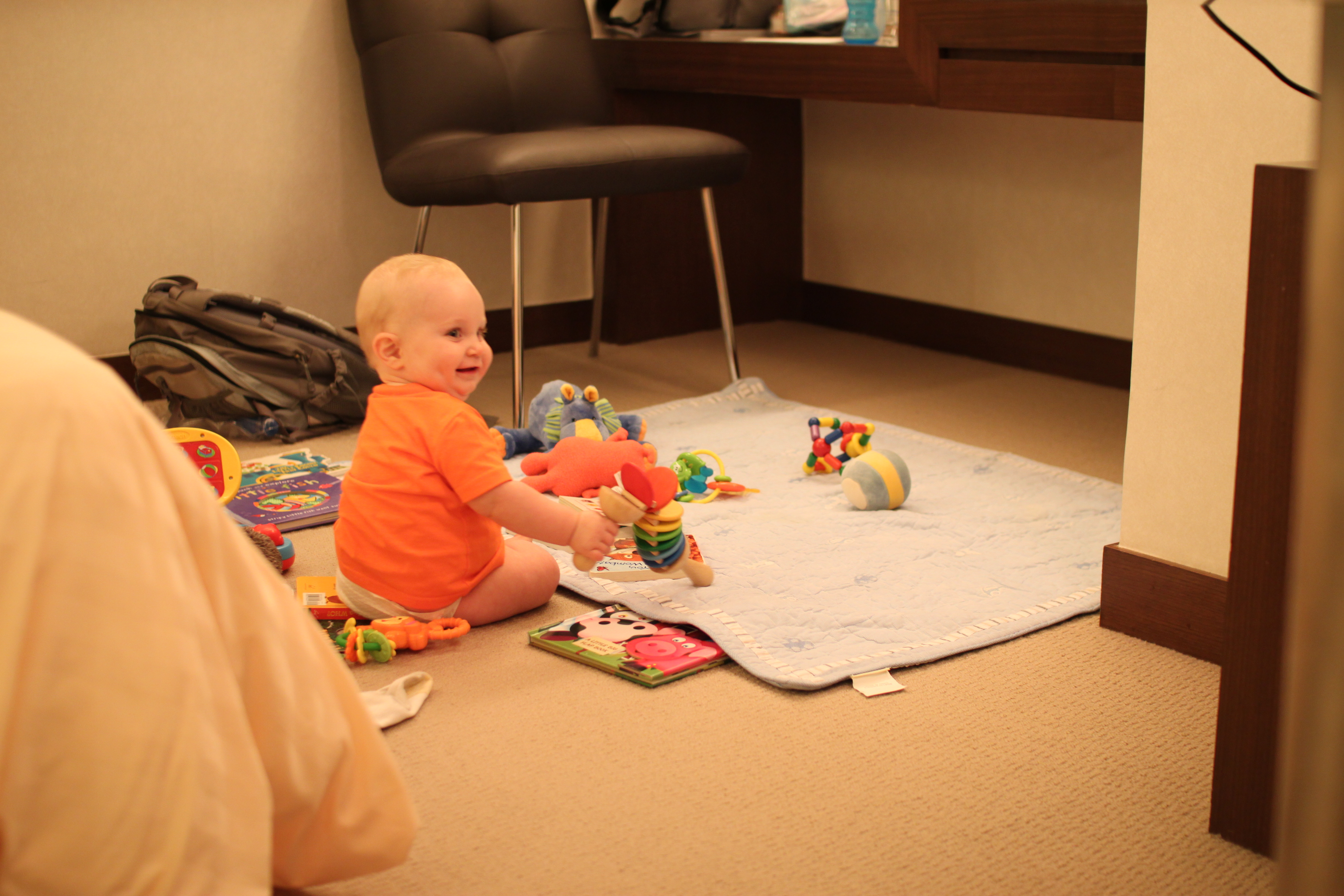 And what made the trip bearable for our seven-month old, and thus, us? Well, due to past experience, we have sworn off long flights with babies that have just begun to crawl or walk and/or cannot understand any measure of reasoning; so honestly, avoid long trips between the ages of nine months and two years. Seriously, folks, long flights are MUCH MUCH easier when a baby is still immobile. Moms, if you are nursing your infant, bring your support pillow, strap it around your waist, nurse on take-off and landing and pretty much the whole flight in between and you are good to go. A nursing child is a happy child. At least in our experience. Oh, and in general, babies hate the bright lights and small, uncomfortable changing tables in airplane lavatories. Short of changing a child on the seats — which is kind of gross for other passengers, but offers more room for you and the child — there is not much more you can do to make this experience more pleasant. Another general rule of thumb is that as soon as your baby falls asleep while nursing after take-off, the flight attendants will talk very loudly in the PA system, turn on the bright lights, and come around with food carts to serve the first meal. Your infant will surely wake up. When he/she does, the good news is that the simplest of items usually keep them entertained mid-flight. Try an empty plastic cup, a spoon, a straw, the in-flight magazine (identifying animals in the magazine can be a fun activity), the safety card in the seat back pocket. All of that entertainment and they’ll be ready to doze off again.