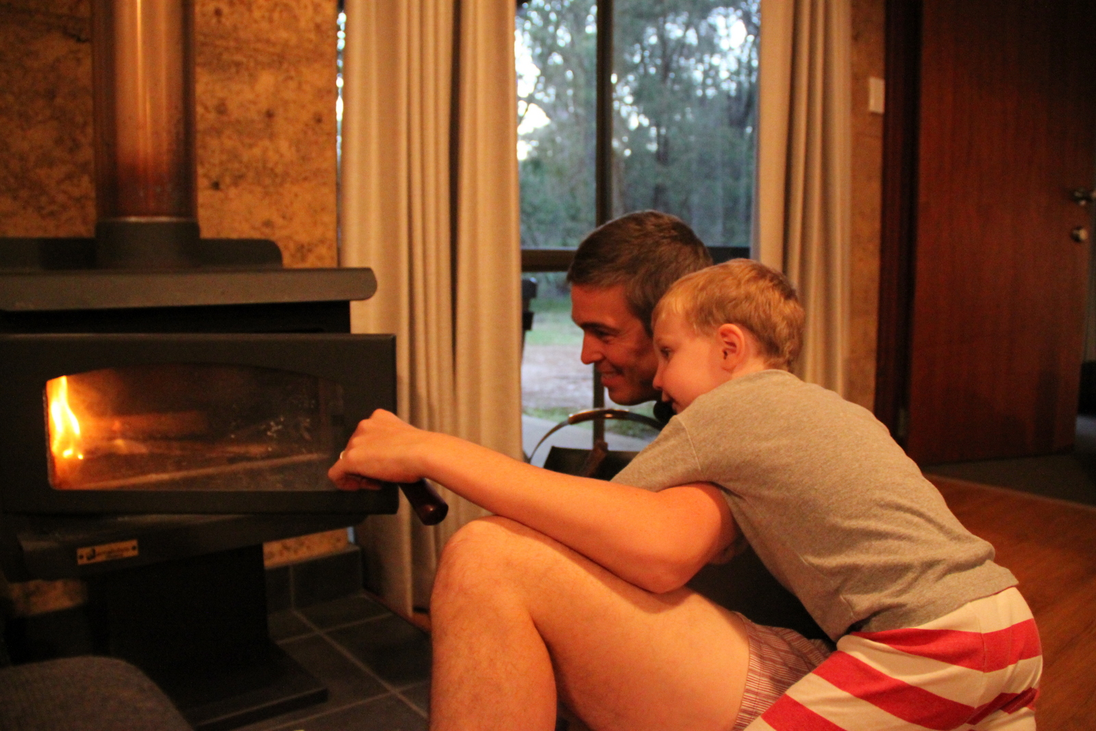 Our digs, Bussells Bushland Cottages, in Margaret River were perfect. P-E-R-F-E-C-T. The cottages happened to be everything we were looking for – cozy, kid-friendly, and privately situated in the bush, yet still only a five minute drive to the township. Every morning and late afternoon we went on a bush walk around the property. Every time we went out, we encountered kangaroos in their natural habitat, as well as beautiful birds (there was a feeder in front of our cottage that the kids could fill with seed every day). Every evening, we built a fire and read our night time stories in the living room together.